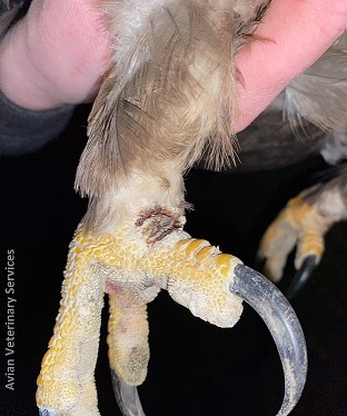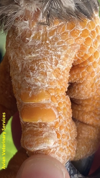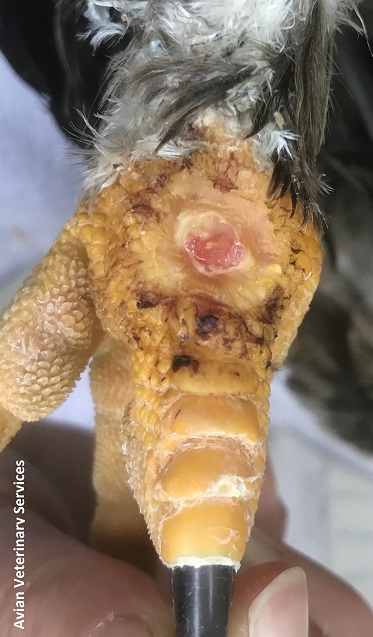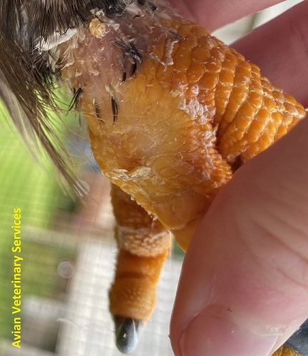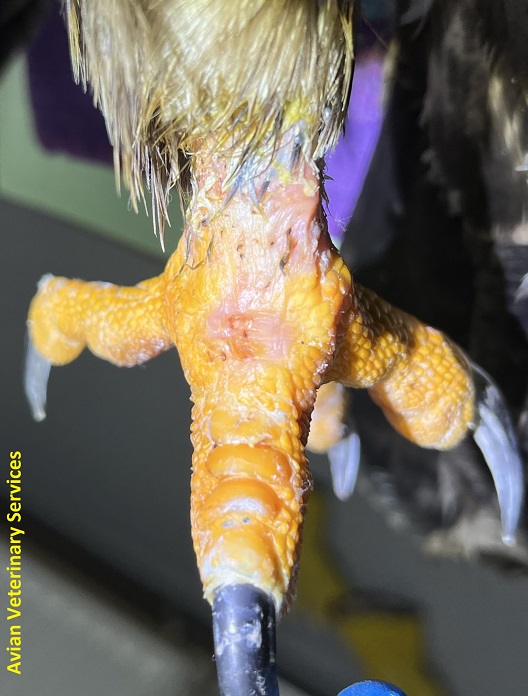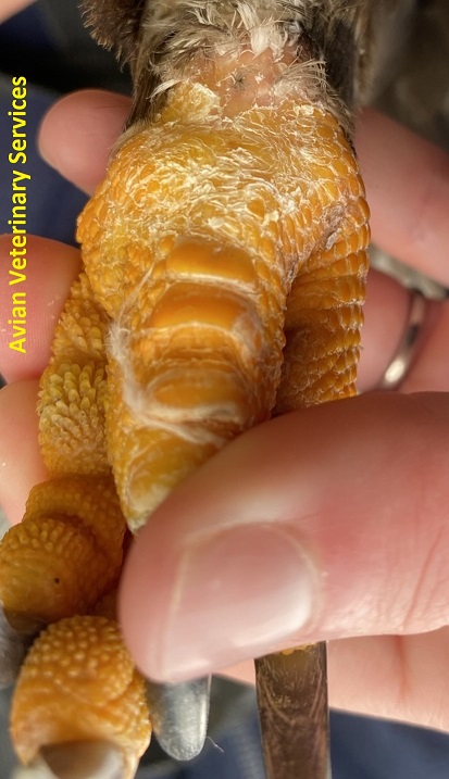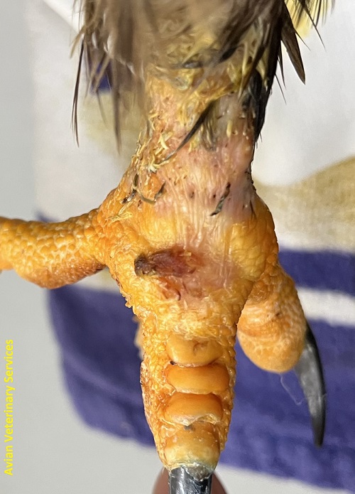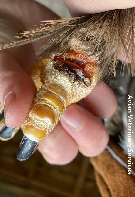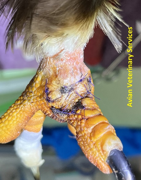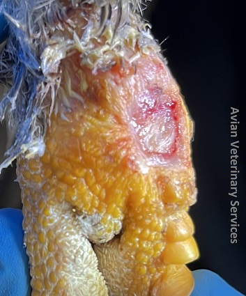 He pointed out that the affected area is actually the thickest area of skin of the whole avian integument and therefore would likely be the slowest to organise even if all was healthy, however from the images we shared he suspected we had a sequestrum of fibrous scar tissue that was not allowing normal granulation and epithelisation of the wound.