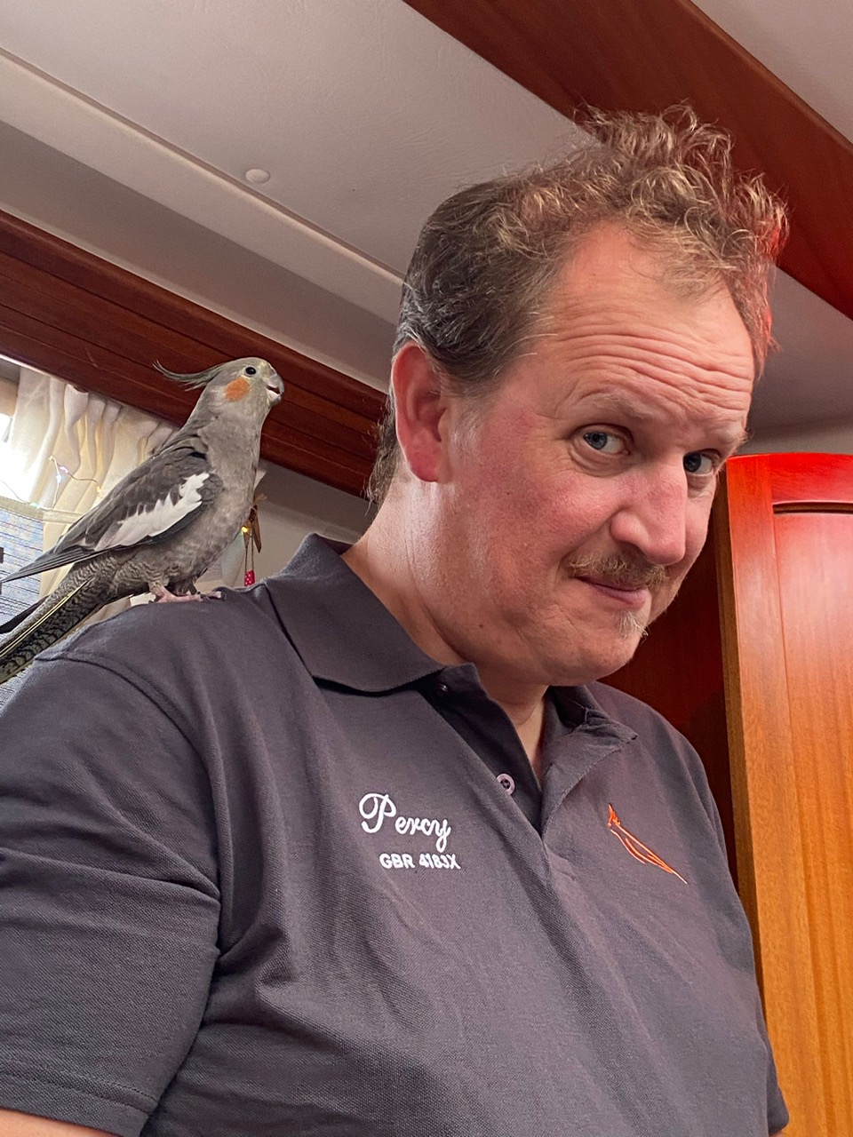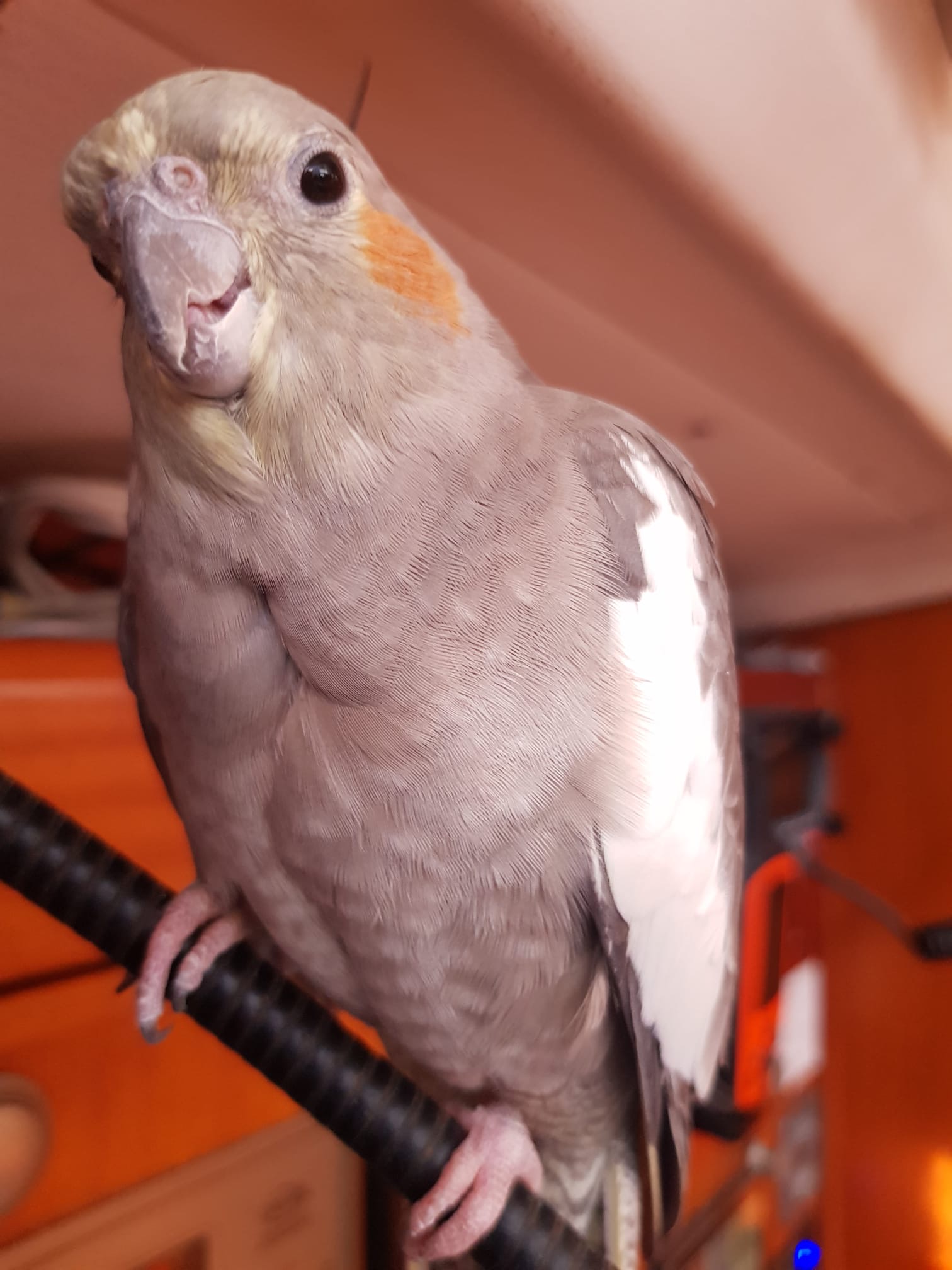 Percy is a much-loved cockatiel, so much so, that her owner’s racing boat is indeed named after her, with its hull, sails and racing uniform bearing her image…brilliant!